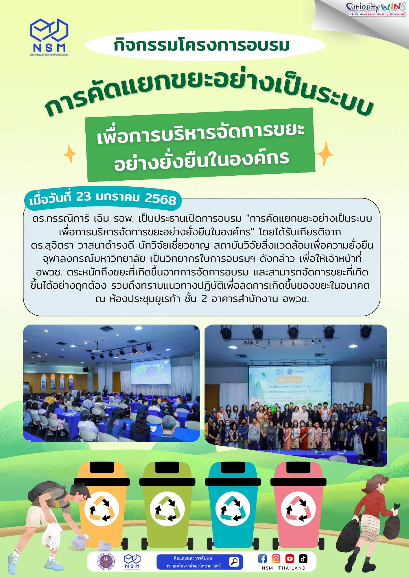 กิจกรรมโครงการอบรม "การคัดแยกขยะอย่างเป็นระบบ เพื่อการบริหารจัดการขยะอย่างยั่งยืนในองค์กร"
